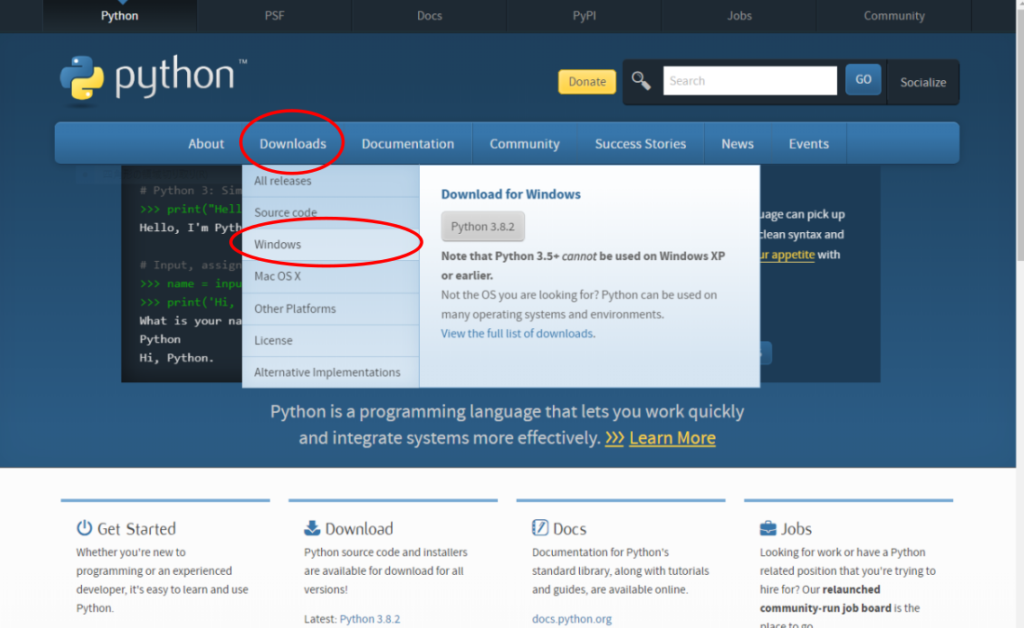 始めにPython.orgに行き、自分の環境にあったPythonをダウンロードしてインストールします。